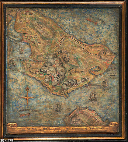 She experimented with Mica as a medium in her work, which gives her artwork a special inner glow. I found that looking at her maps and looking at her fine art, there are some dynamic similarities. The top work is an abstract image with oils and mica. The bottom work is a map of the Battle of Bunker Hill. Have your students think about the elements and principles of art as you compare values, lines, shapes, and unity in both of these works. If you don’t know the artist’s name for each piece, ask your students if they could guess the same person who made them?