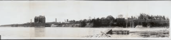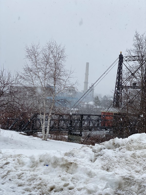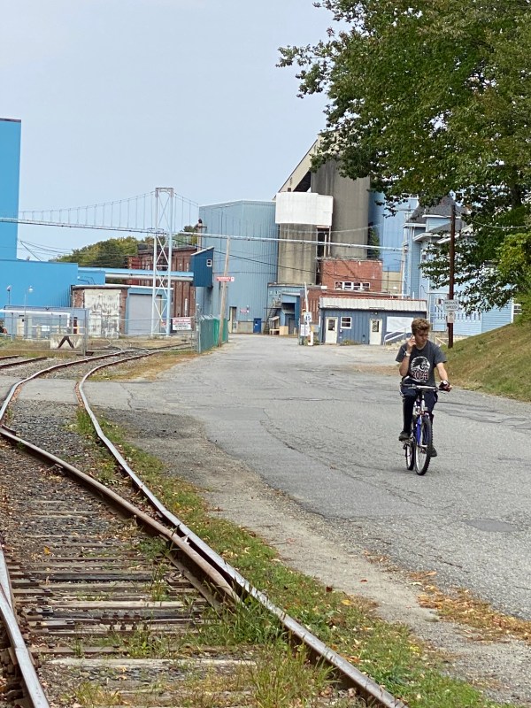 The Two Cent Bridge is a walking bridge built to help the mill workers who lived in Waterville easily cross the rushing Kennebec River to work in the mill in Winslow. This stretch of the Kennebec housed a water-powered mill just below Ticonic Falls. This site has been a manufacturing hub since 1896 with the construction of Waterville Iron Works and then the Scott Paper Mill, which was constructed across the river in Winslow in the early 1900s. Waterways like the falls along the Kennebec River were prime spots for mills and factories for many reasons, such as transportation, power, and a dumping place for waste.